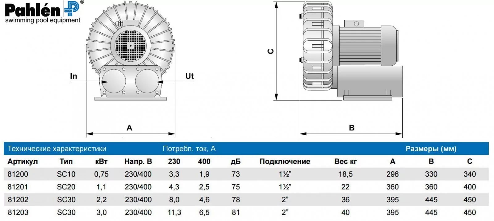 Корпус компрессора для бассейна Pahlen SC30 3 кВт кВт и крыльчатки изготовлены из алюминия. Страна производитель – Швеция.