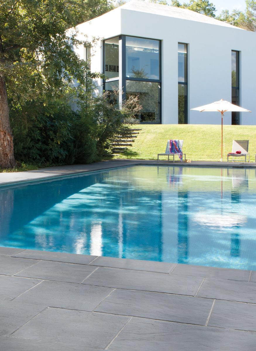 Бортовые и террасные элементы производят не из природного камня, а методом формования композитного материала. Технология похожа на изготовление архитектурного камня или бетонных плит премиум-класса. Компания добывает сырье из собственного карьера недалеко от реки Ло, на юге Франции.