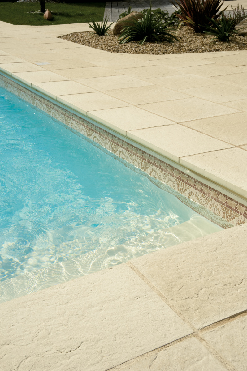 Бортовые и террасные элементы производят не из природного камня, а методом формования композитного материала. Технология похожа на изготовление архитектурного камня или бетонных плит премиум-класса. Компания добывает сырье из собственного карьера недалеко от реки Ло, на юге Франции.
