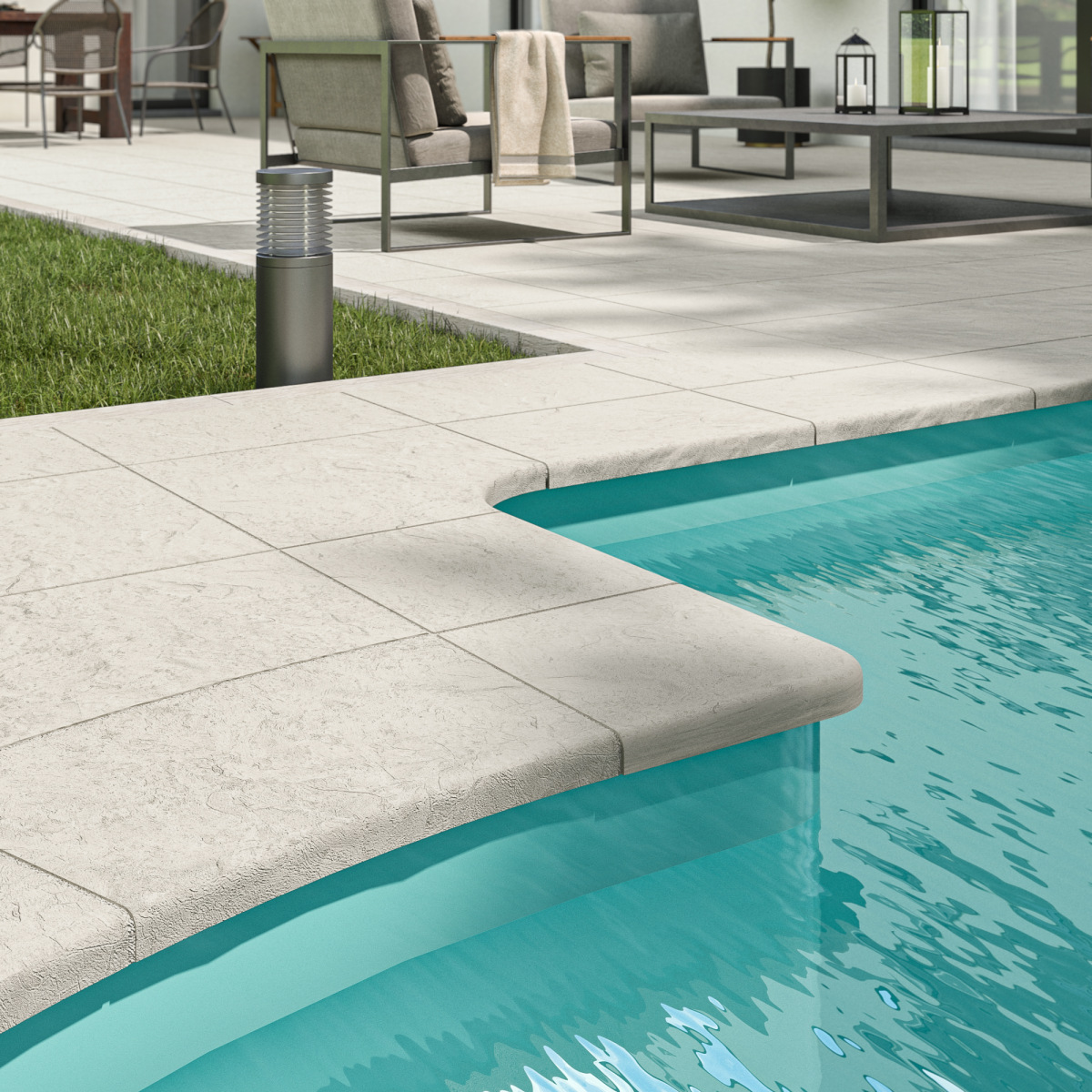 Бортовые и террасные элементы производят не из природного камня, а методом формования композитного материала. Технология похожа на изготовление архитектурного камня или бетонных плит премиум-класса. Компания добывает сырье из собственного карьера недалеко от реки Ло, на юге Франции.
