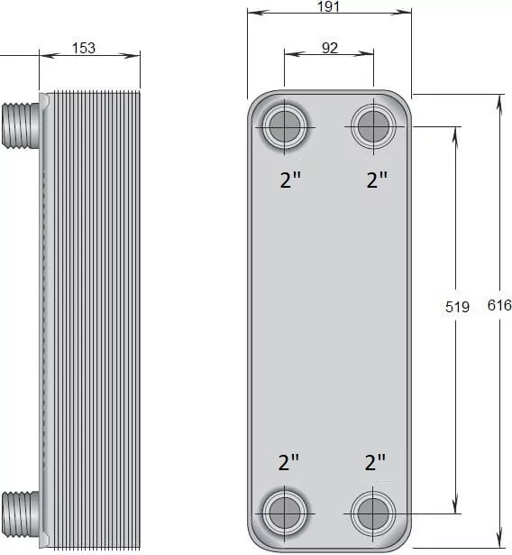 Бренд: Pahlen,Материал корпуса: нержавеющая сталь,Тип теплообменника: трубчатый,Мощность, кВт: 40 Категория: Pahlen CB110-54L 600 кВт пластинчатый теплообменник для бассейна