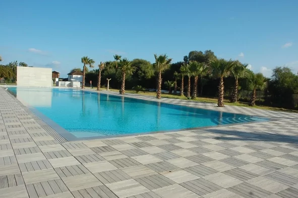 Плита так же, как и бортовой камень для бассейна — это не только эстетичный вид зоны отдыха, но и безопасность – специальный рельеф бортового камня предотвратит скольжение купальщиков.