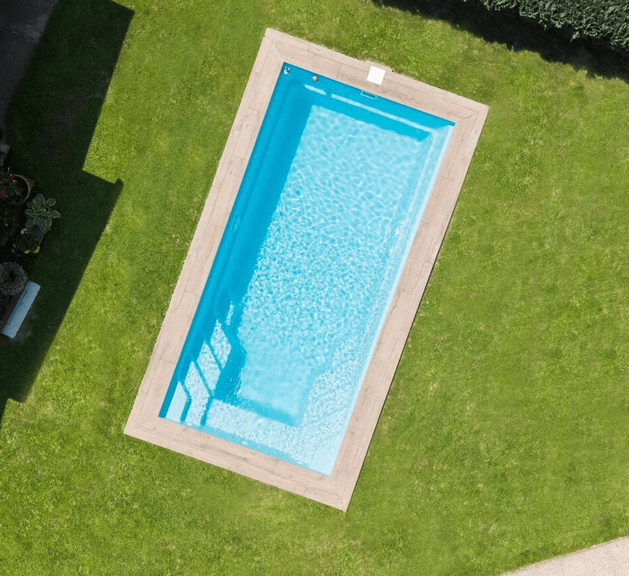 Бассейн доступен в различных цветах, включая классический голубой, графитовый, песочный и белый. Доступны покрытия с эффектом 3D и кварцевыми вкраплениями для глубокого цвета и блеска.