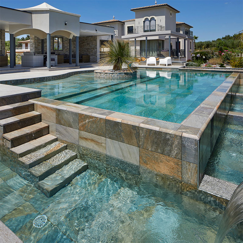 Коллекция представлена в разнообразных форматах и дополнена специальными элементами: ступенями, бортиками, сливными решётками и угловыми деталями.