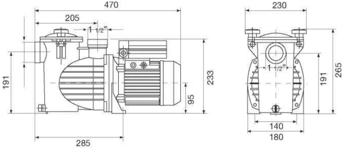 Гидравлической блок изготовлен из полипропилена, армированного стекловолокном и усиленного ребрами жесткости. Вал двигателя из нержавеющей стали марки AISI 316 с сальниками из углеродистой стали с латунной вставкой. Насос можно использовать для перекачивания морской/соленой воды.