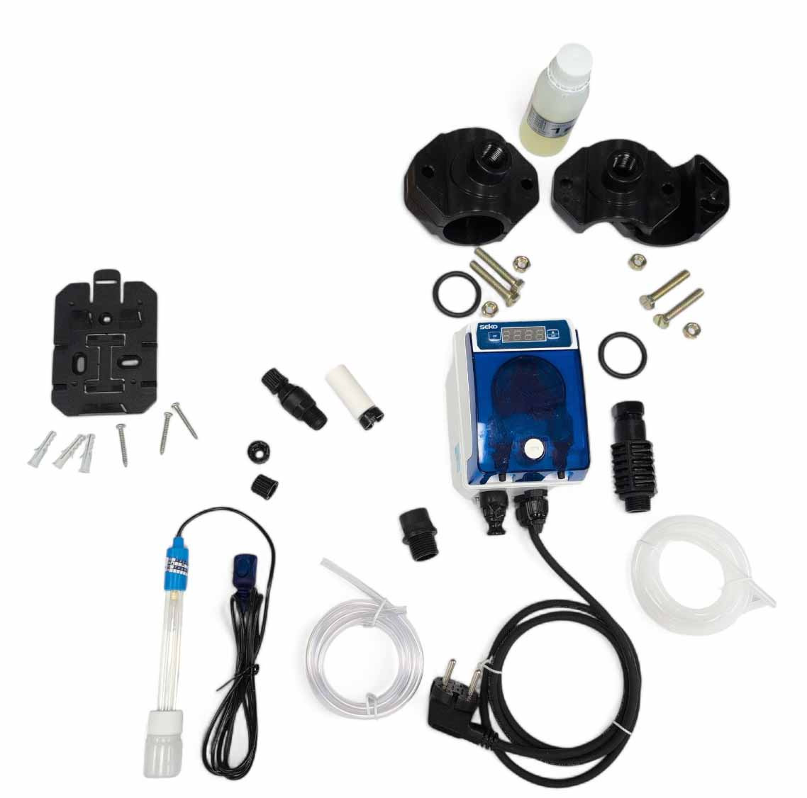 Прибор POOLONE pH, произведённый компанией Seko (Италия), представляет собой решение для автоматического поддержания оптимального уровня кислотности в воде бассейна. Он оснащён встроенным дозирующим механизмом, который на основе полученных измерений в режиме реального времени добавляет реагенты для снижения или повышения pH, обеспечивая безопасную и комфортную среду для купания.