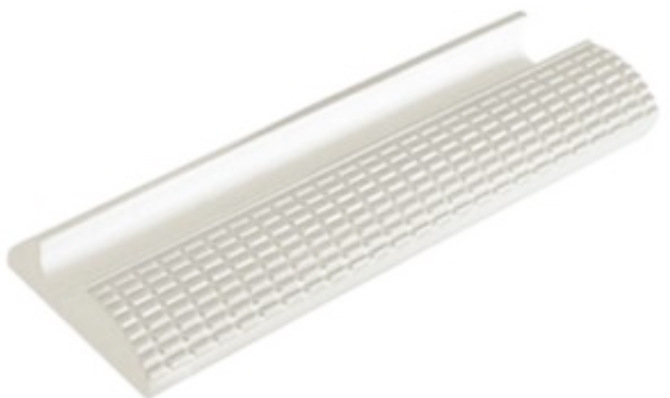 Керамическая бортовая плитка с противоскользящей поверхностью для облицовки борта спортивных бассейнов. Округлая форма плитки выполняет роль рукохвата и препятствует попаданию грязной воды с обходной дорожки в чашу бассейна.