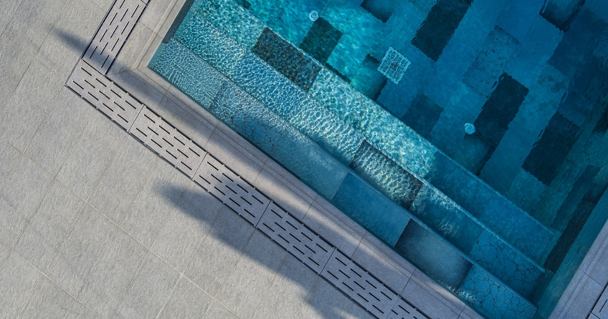 Керамогранитная решётка обладает высокой механической прочностью и не деформируется под нагрузкой, в отличие от пластиковых аналогов. Материал не выгорает на солнце, не теряет цвет и геометрию со временем, устойчив к воздействию хлора и других реагентов. Благодаря монолитной структуре решётка сохраняет презентабельный внешний вид на протяжении всего срока эксплуатации.