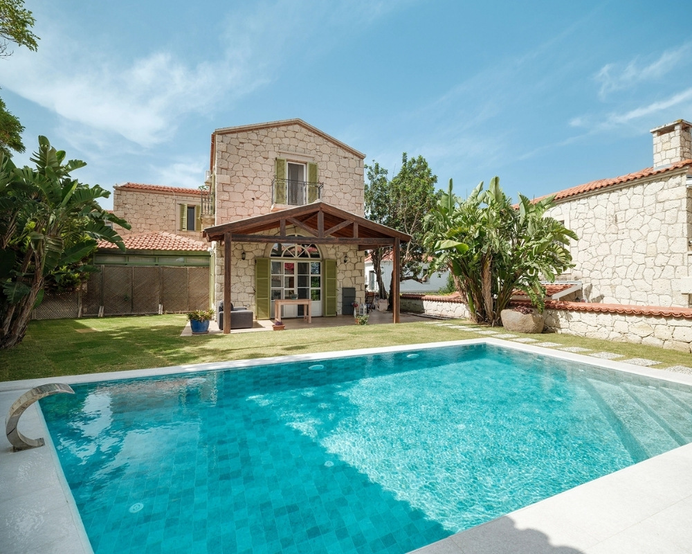 Serapool Nove Series Sukabimi формирует в воде стабильный природный зелёный оттенок с умеренной глубиной и минимальными бликами. Визуальный эффект воды — чистый, спокойный, без резких цветовых переходов, что делает бассейн визуально аккуратным и сбалансированным. Поверхность плитки выполнена с каменной фактурой и матово-сатиновым эффектом, обеспечивающим равномерное отражение света и практичность в эксплуатации.