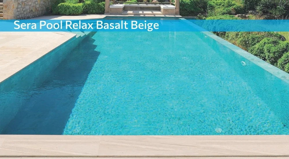 Serapool Relax Basalt Beige придаёт воде тёплый бежево-песочный оттенок с мягким природным характером. Вода выглядит светлой, спокойной и визуально более уютной. Плитка имитирует фактуру натурального базальта в тёплой бежевой гамме, создавая ощущение природного камня и гармонии.