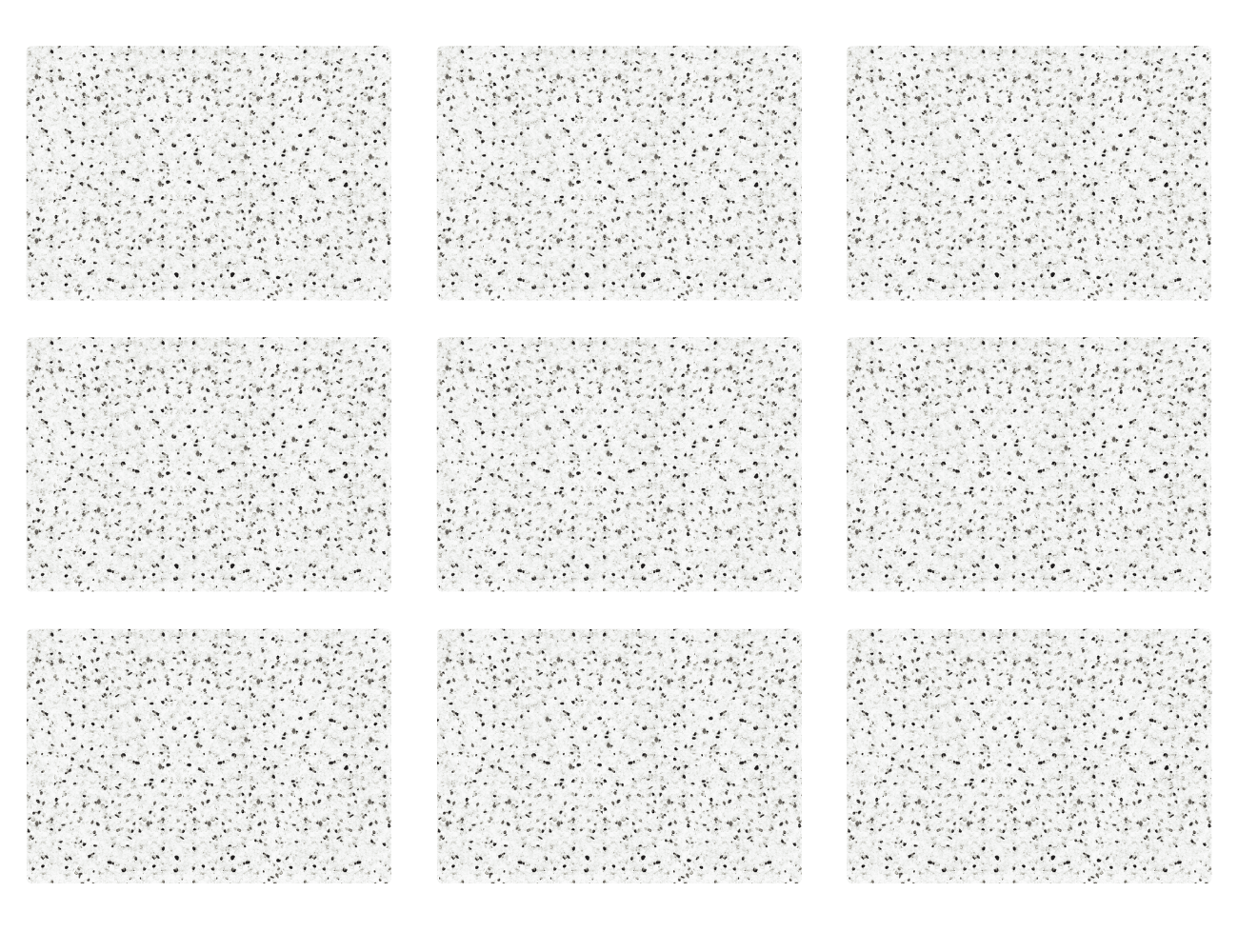 5×5 см, 10×10 см, 11×33 см, 16,5×16,5 см, 16,5×66 см, 33×33 см, 33×66 см.