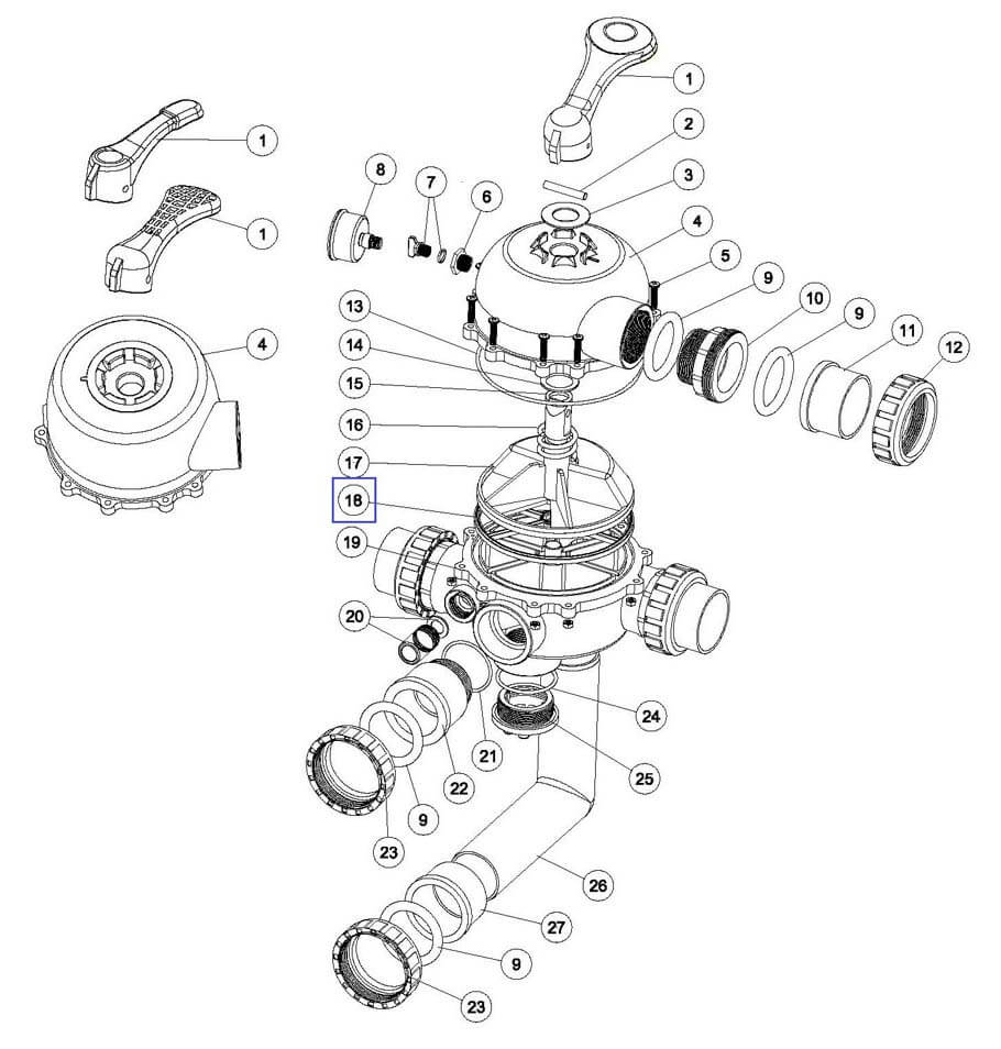 Спайдер Emaux резьба 2" 02311003 является сменным элементом шестипозиционного клапана Emaux, который можно заменить, если он вышел из строя. Прокладка Emaux "Паук" для 2" 6-ходового крана MPV02MPV04 (02311003). Диаметр 175 мм.