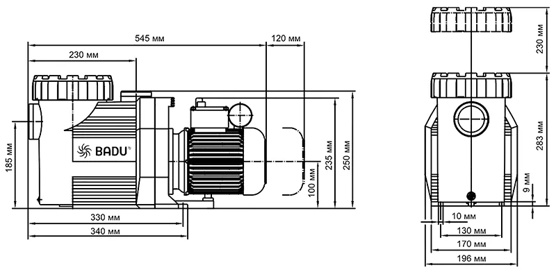 Моторный блок и гидравлический соединены между собой материалами, не проводящими электричество, без гальванической связи, что защищает вал двигателя от агрессивной среды и коррозии. Такая конструкция обеспечивает безопасность эксплуатации для оператора, в помещениях с повещённой влажностью. Разборные соединительные муфты для подключения к трубопроводу поставляются в комплекте.