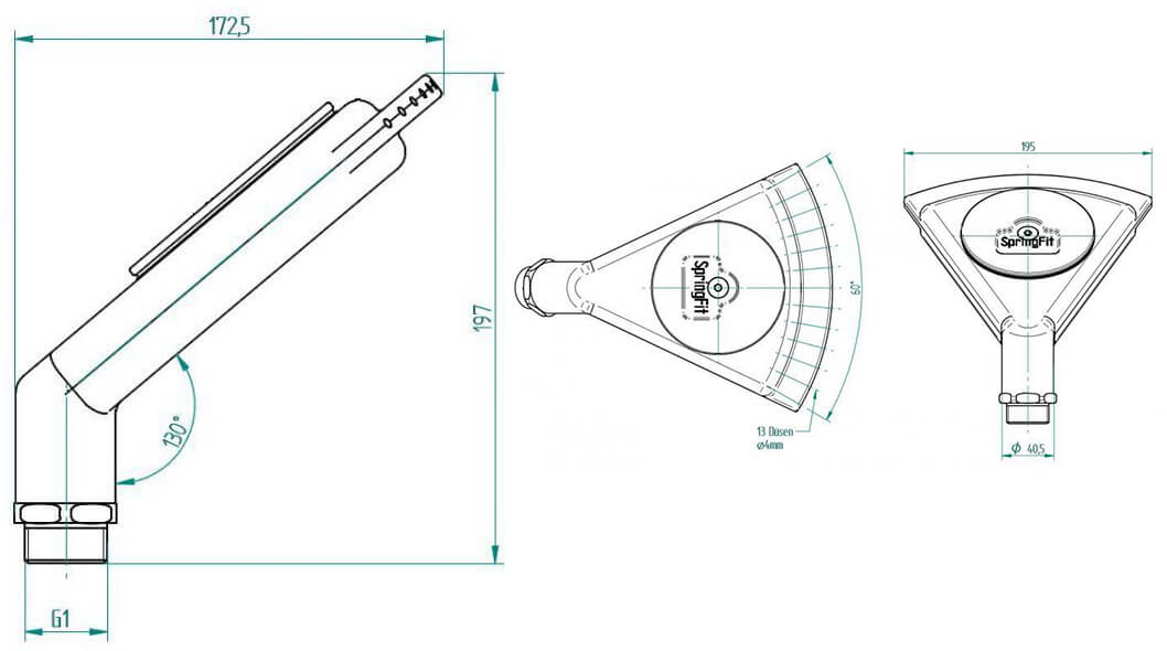 Насадка для фонтана оснащена 13 выходами, которые создают устойчивые на ветру струи. Высота струй может быть отрегулирована дополнительный дроссельным клапан.