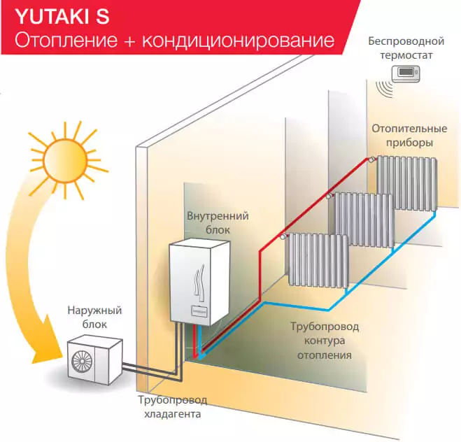 Тепловой насос для отопления Hitachi Yutaki S RWM-2.0NE/ RAS-2WHVNP состоит из двух раздельных блоков: наружного - RAS-2WHVNP и внутреннего RWM-2.0NE. Подходит для отопления, системы ГВС и охлаждения помещений площадью до 100 м2.