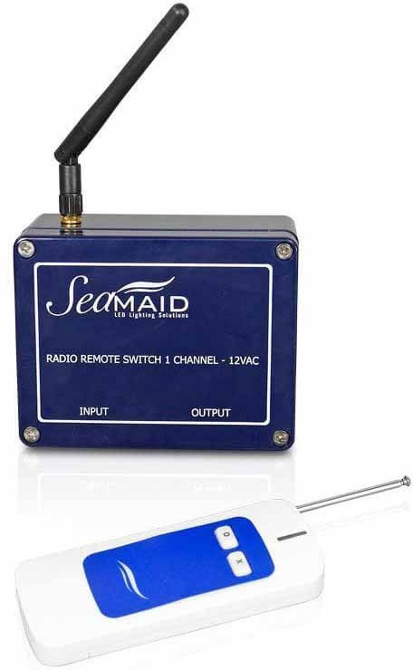 З 1 канальним пультом керування для прожекторів Seamaid освітлення басейну стане родзинкою вашого басейну. За допомогою дистанційного пульта та приймача ви зможете вмикати та вимикати підсвічування басейну та змінювати кольори свічення. Корпус приймача та пульта спеціально розроблений для роботи у вологому середовищі. 1 канальний пульт керування та приймач контролер розрахований на 6 світлодіодних прожекторів Seamaid.