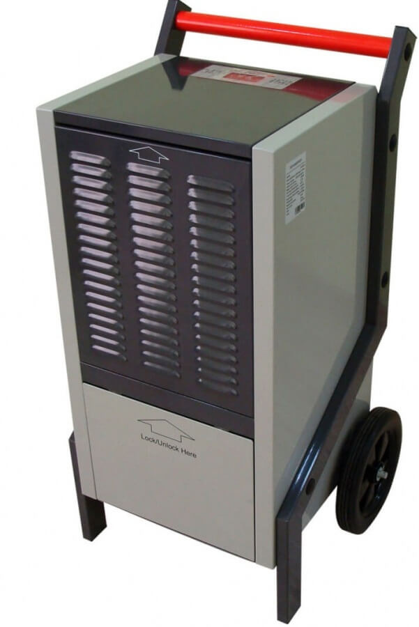 Apex AP60-DT пересувний осушувач повітря обладнаний датчиком води, вбудованим накопичувальним баком (6000 мл) і таймером. До баку легко можна дістатися за допомогою дверцят з замком пружинного типу.
