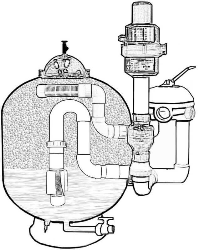 Комплектація фільтра Aquaforte UltraBead UB 60: завантаження наповнювач, 6-й позиційний кран, повітродувки, манометр і сполучна муфта.