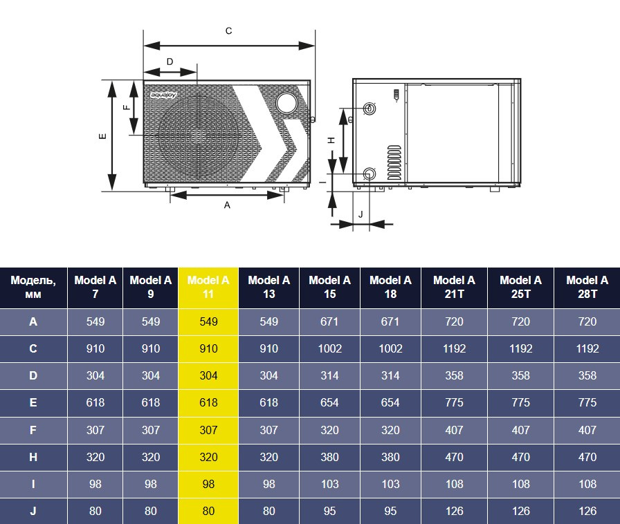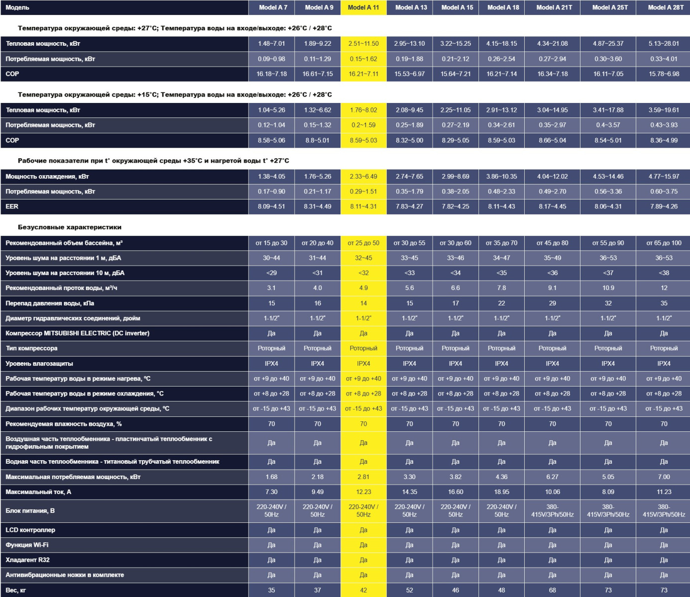 Підтримує нагрівання води від +9 до +40 °C та охолодження від +8 до +28 °C при температурі повітря від -15 до +43 °C.