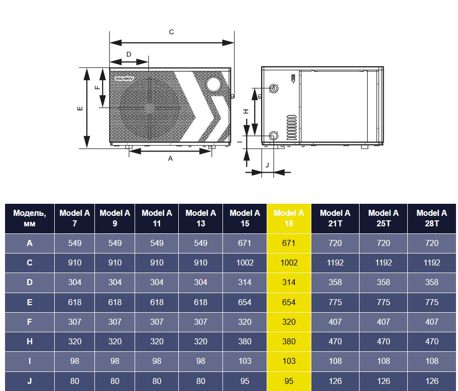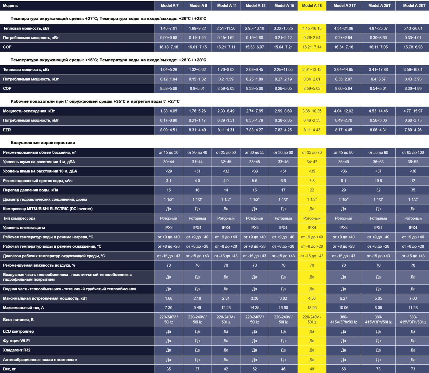Підтримує нагрівання води від +9 до +40 °C та охолодження від +8 до +28 °C при температурі повітря від -15 до +43 °C.