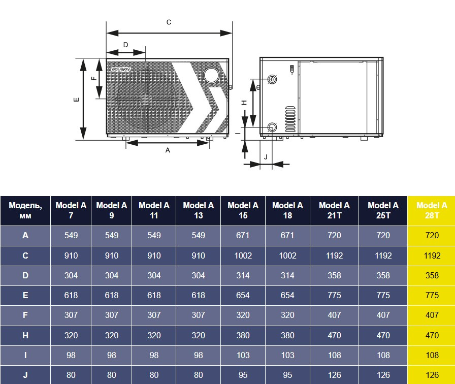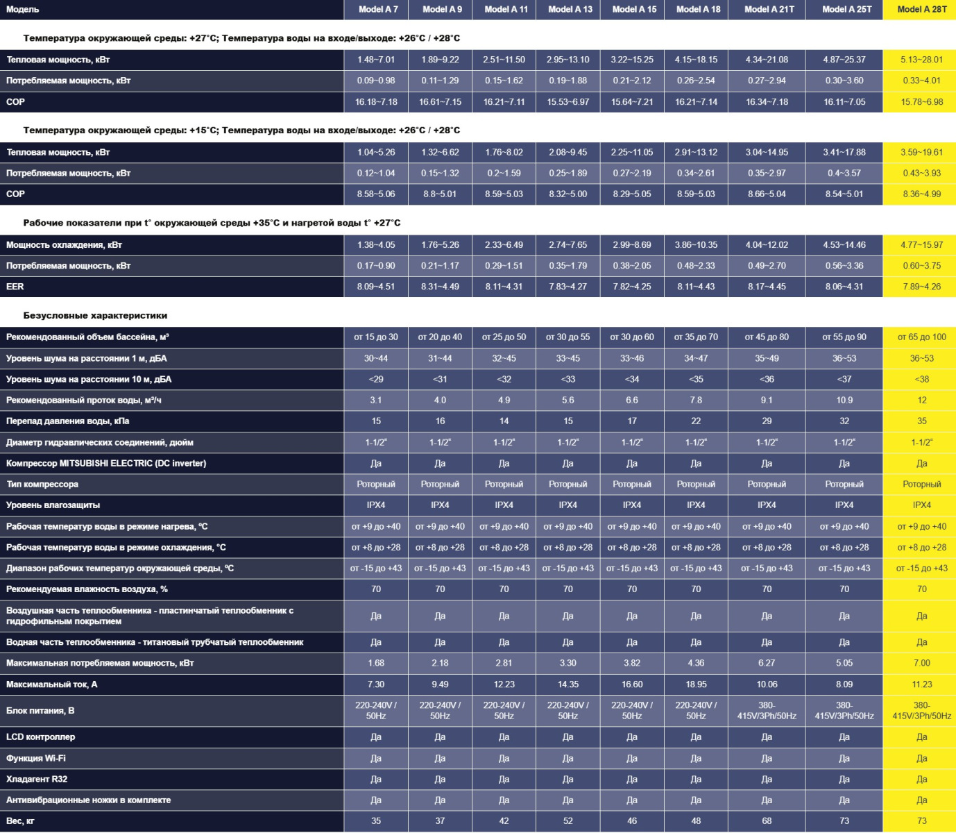 Підтримує нагрівання води від +9 до +40 °C та охолодження від +8 до +28 °C при температурі повітря від -15 до +43 °C.