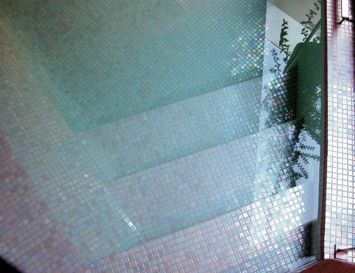Мозаїка для басейну Українського бренду AquaMo. Виробляється з рециклованого скла, що відповідає екологічним стандартам. Покриття має підвищену стійкість до вологи, морозу і хімічних агресивних речовин — підходить для ванних кімнат, басейнів, хамамів.