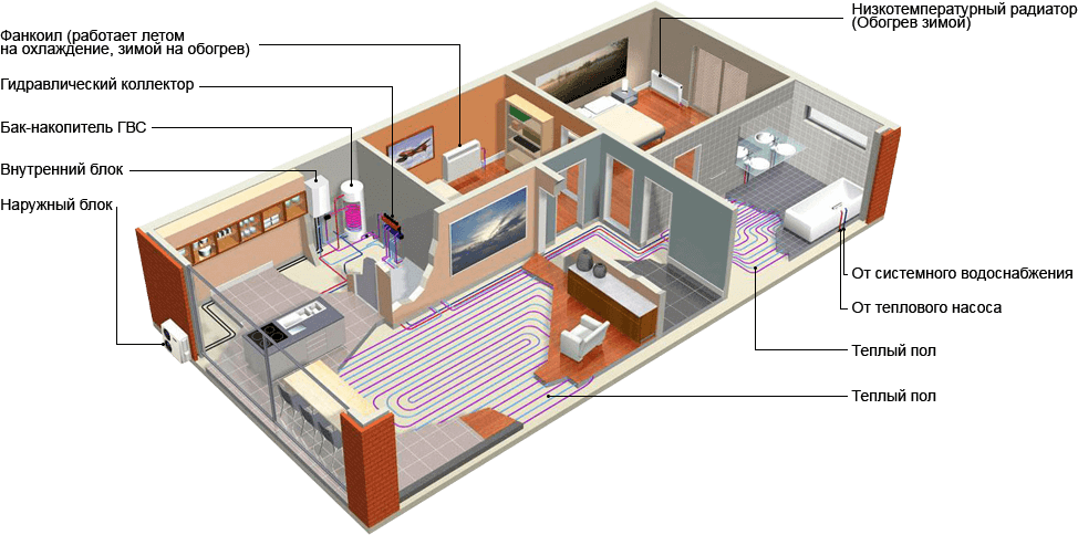 Схема підключення теплового насоса Aquaviva AVH15S для опалення |