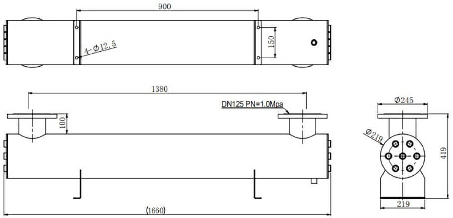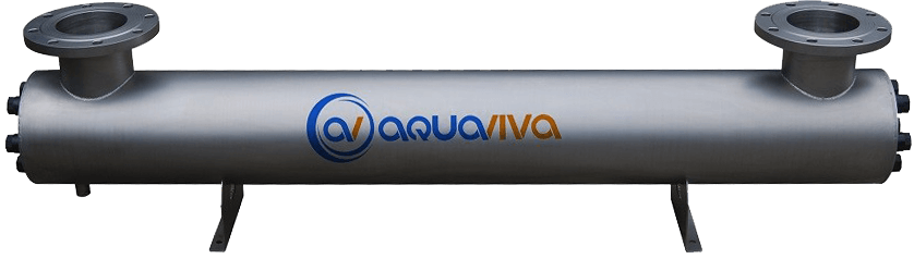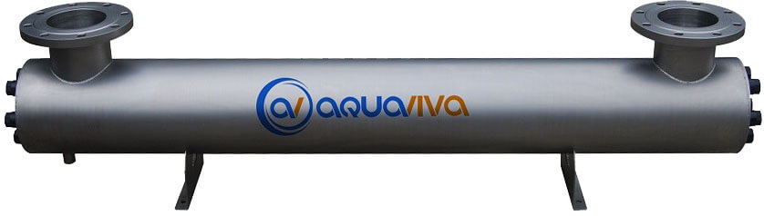 AquaViva AVUF150T DN200, 2.3 кВт Ультрафіолет для басейну – система (низького тиску) дезінфекції води у басейнах громадського користування об'ємом до 220 м3. Ефективно знезаражує воду шляхом швидкого руйнування небажаних органічних елементів у воді басейну на клітинному рівні завдяки УФ-С-опроміненню (l = 254нм), яке добре поглинає ДНК усіх мікроорганізмів та вірусів. Це поглинання призводить до руйнування генетичної структури ДНК. Мікроорганізми та віруси біологічно інактивуються, тому викид у 254нм підходить для цілей дезінфекції якнайкраще. У цій установці використовується лампа Аммальгам Lightsources. Це лампи низького тиску і високої енергоефективності. Технічний опис: Реакторна камера: сталь AISI 304 L Кількість ламп: 7 шт (по 320 Вт) Термін служби лампи – 12000 годин Робочий тиск: 0,6 МПа Довжина хвилі: 254 нм Лампи: USA Lightsources Загальна потужність: 2240 Вт Напруга живлення: 110-120 В/60 Гц, 220-240 В/50 Гц Коефіцієнт пропускання кварцової втулки: 92% Температура води: 4 - 50°C Бактерицидна ефективність: до 99% Блок управління: індикатор стану, звуковий та візуальний сигнал тривоги З'єднання: вхід/вихід DN200 Комплектація: УФ встановлення Блок управління Фурнітура Інструкція
