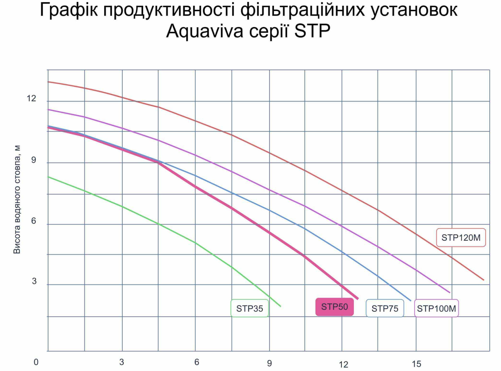 Aquaviva D400-STP50 — це компактна піщана фільтраційна станція для приватних басейнів. Вона поєднує в одному блоці фільтр і циркуляційний насос, забезпечуючи постійне очищення води від механічних забруднень: пилу, піску, листя, дрібного сміття та завислих частинок. Це базове рішення для підтримання прозорості води за умови правильного підбору часу роботи та регулярного зворотного промивання.
