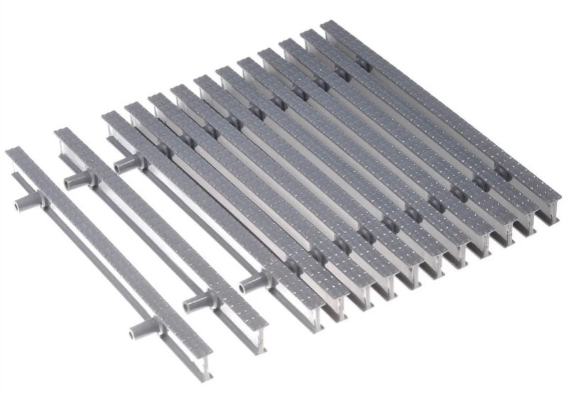 • Конструкция: наборная (модульная) — состоит из отдельных элементов, которые при монтаже образуют непрерывную линию переливной решётки.