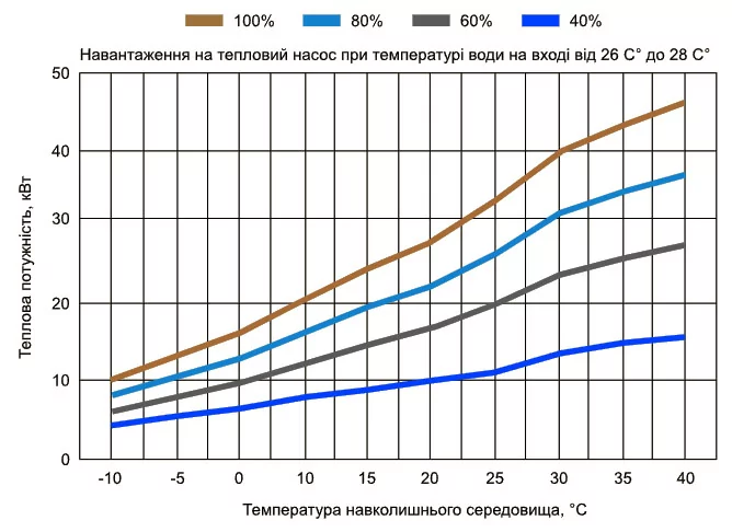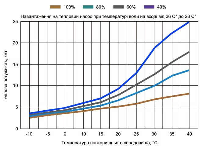 Ефективність роботи компресора на охолодження води залежить від температури повітря. Перевірте показники при планованій температурі повітря і сезону експлуатації басейну.