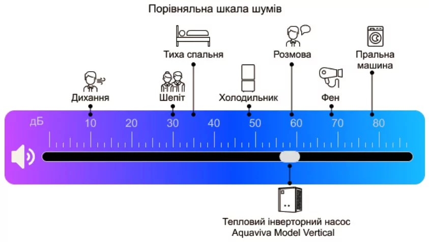 Тепловий насос з інверторним компресором для обігріву води у великих приватних та громадських басейнах об'ємом до 160 м3. Інверторний компресор Mitsubishi, який використовується у конструкції моделей Aquaviva Model Vertical, працюють з високою енергоефективністю. Забезпечують додаткову економію електроенергії у 30–45% порівняно з насосами з компресорами on/off.