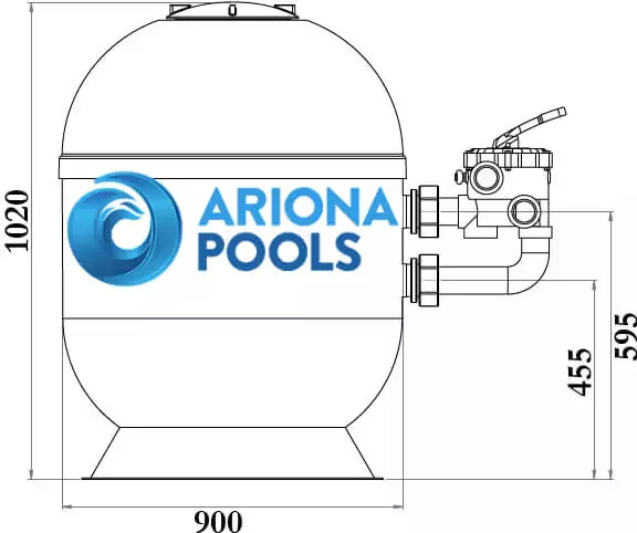 Бічне підключення 6-позиційного клапана та трубопроводу дозволяють встановлювати фільтр у технічних приміщеннях з невеликою висотою. Для заповнення фільтруючим матеріалом у верхній частині корпусу встановлена прозора кришка на різьбовому з'єднанні з гумовим ущільнювачем. Прозора кришка забезпечує зручний контроль рівня засипки та її стану.