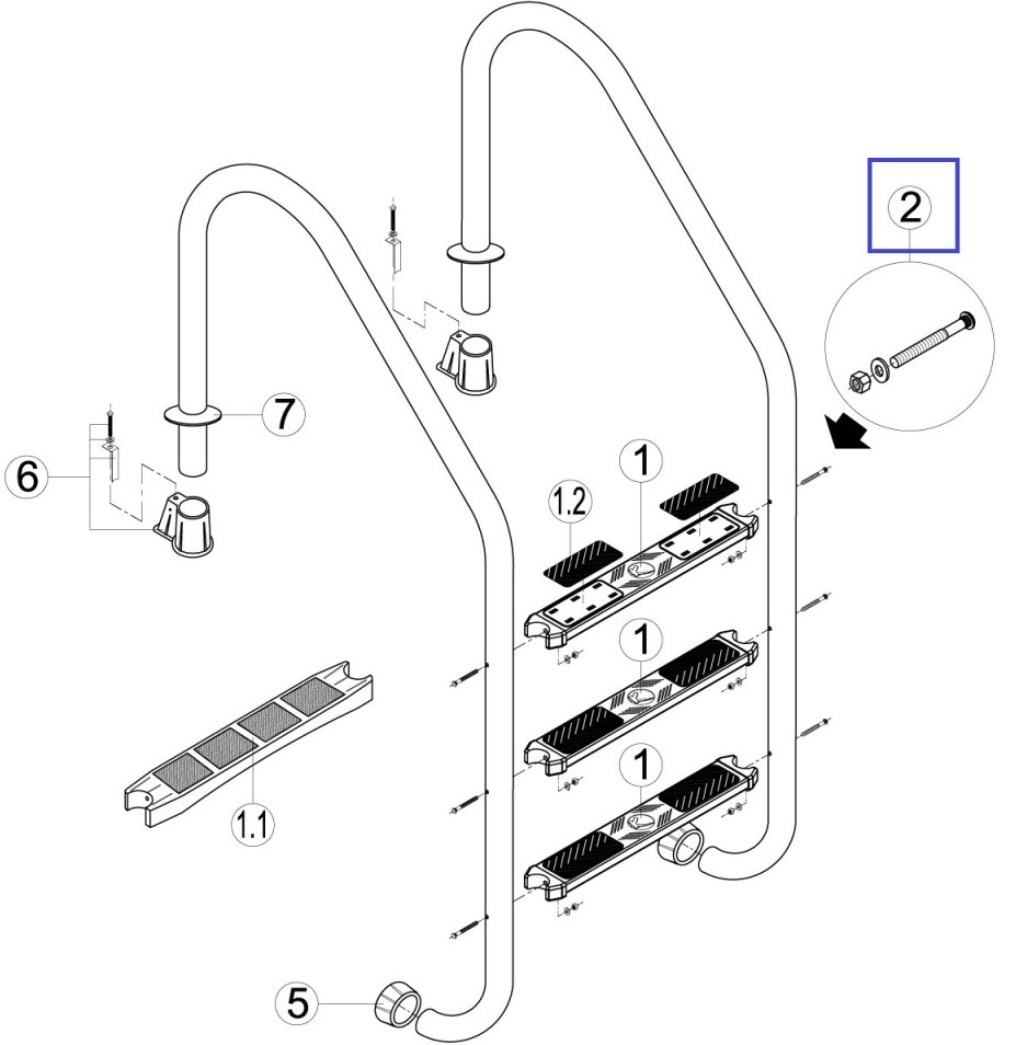 Болт кріплення для сходів Kripsol RLAD0002.00R є змінним елементом який можна замінити якщо він вийшов з ладу.