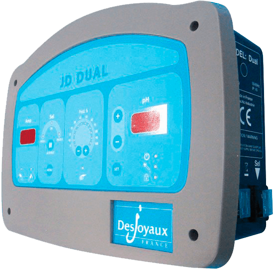 Серія JD Dual відрізняється від серії JD Salt наявністю вбудованого датчика, який постійно вимірює рівень pH у воді та автоматично дозує коригуючий засіб для підтримки заданого значення