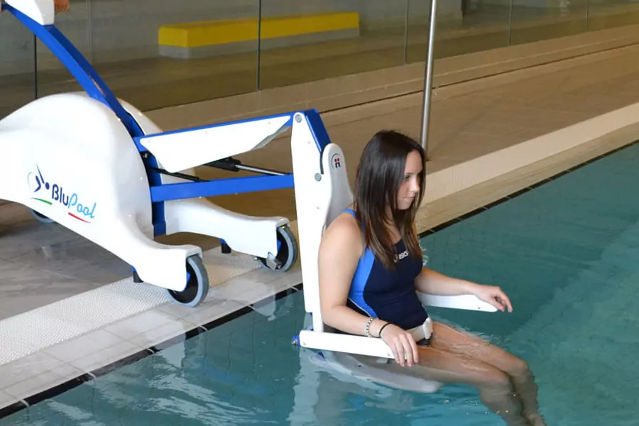 Підйомник для інвалідів розроблений для безпечного та плавного переміщення, занурення людей з обмеженими здібностями з роздягальні в басейн та інші ділянки біля води та назад. Країна виробник – Італія!