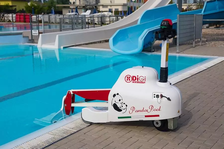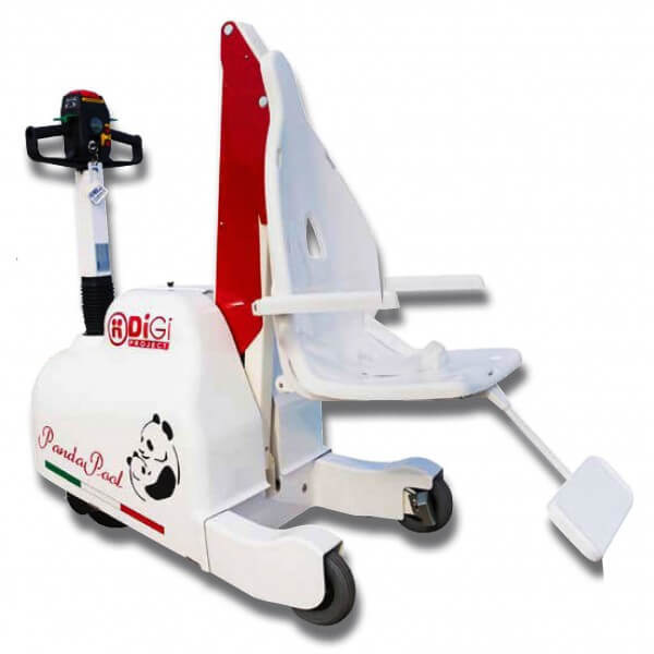 Digi Project Panda Pool ліфт-підйомник для людей з обмеженими здібностями є механізований мобільний підйомник, що допомагає людям з обмеженими здібностями або літнім людям, або ж людям, які проходять реабілітацію після травм , занурюватися в басейн. Країна виробник - Італія.