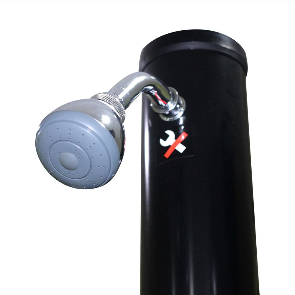 Витончений і елегантний дачний душ AquaViva 70508 з баком на 20 літрів сподобається тим, хто цінує простоту і лаконічність. Конструкція душа виготовлена з пофарбованого алюмінію і PVC чорного кольору, що дає можливість воді нагріватися швидше. Нагрівання води здійснюється за допомогою сонячних променів і підключається пристрій до звичайного садового шлангу.
