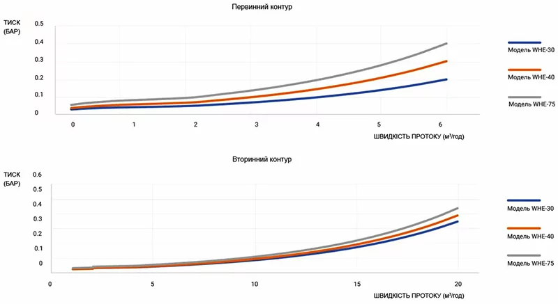 Допустимий тиск у контурі теплоносія - 30 бар. Модель може бути використана в системах з високим тиском теплоносія, наприклад для відбору тепла з централізованих, міських лініях подачі тепла. Допустима температура теплоносія до +170С, модель застосовна для систем з твердопаливними котлами та максимальною температурою теплоносія.
