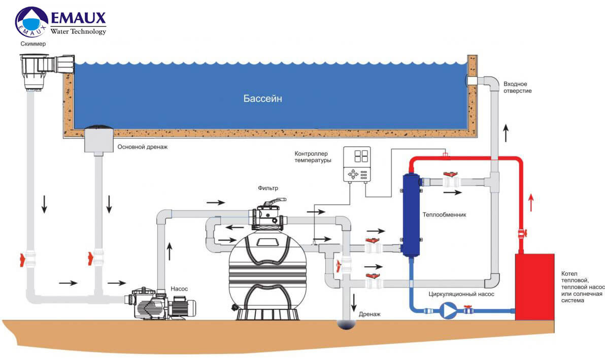 Устаткування проводиться компанією Emaux Water Technology (Гонконг). Фірма випускає техніку для басейнів майже 40 років. Агрегати від цієї компанії славляться своєю надійністю та значним експлуатаційним терміном. При дотриманні правил обслуговування та використання теплообмінники Emaux вкрай рідко потребують ремонту.