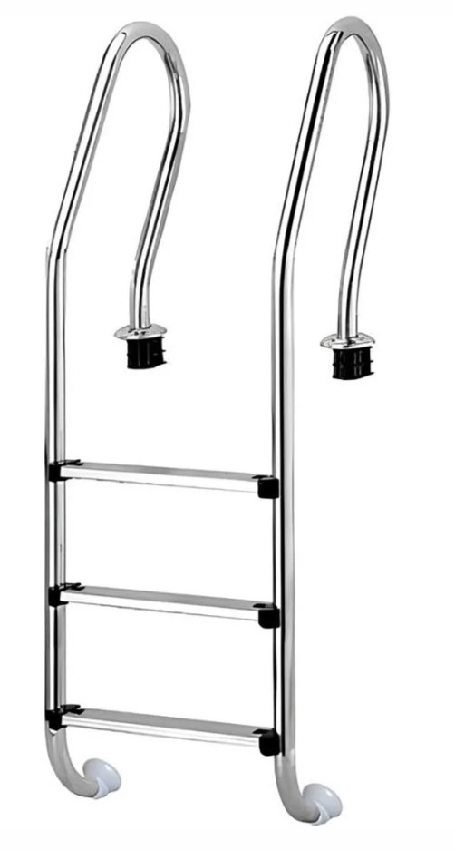 Emaux Mixta NSF315-SR Надійне та компактне рішення для комфортного та безпечного входу в басейн. Технічні характеристики: Матеріал: нержавіюча сталь марки AISI-304 Діаметр поручнів: 42 мм Товщина стінки труби: 1,2 мм Максимальне навантаження на щабель: 150 кг Висота сходів: 1580 мм Ширина: 493 мм Вага: 12.5 кг Тип кріплення: анкерний - через пластикові склянки (анкера), заливаються в борт басейну при будівництві Нижня частина сходів: упирається в стінку басейну через гумові заглушки, щоб не пошкодити облицювання Сходинки: нержавіюча сталь + антиковзкі гумові накладки Комплект постачання: Драбина Анкера Болти Декоративні заглушки Антиковзкі сходинки