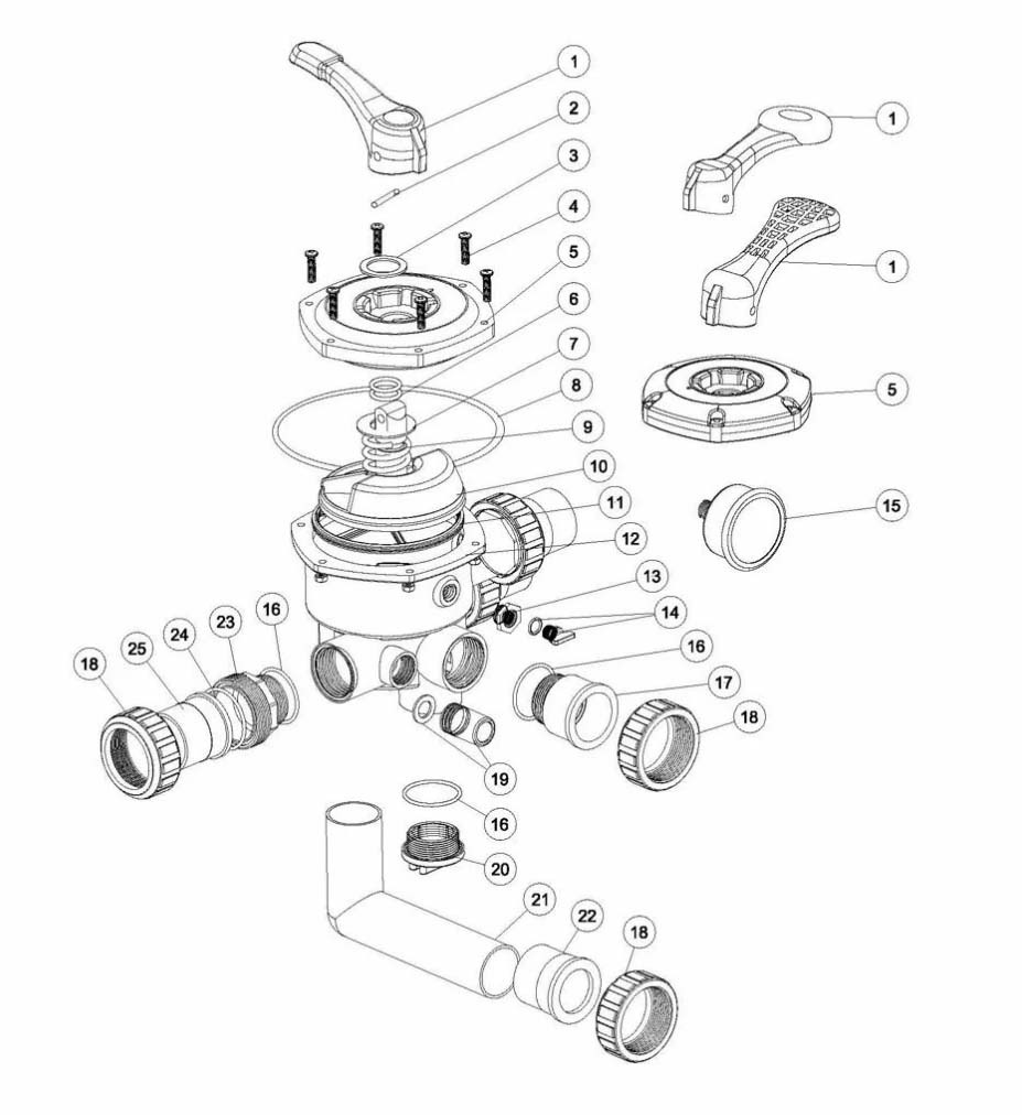 Шестипозиційний кран – незамінний елемент для керування фільтрацією басейну. Він забезпечує зручне та безпечне перемикання режимів роботи фільтрів EMAUX серії MFS, SP, S, дозволяючи швидко проводити фільтрацію, промивку, зворотне промивання, злив води та циркуляцію без демонтажу обладнання.