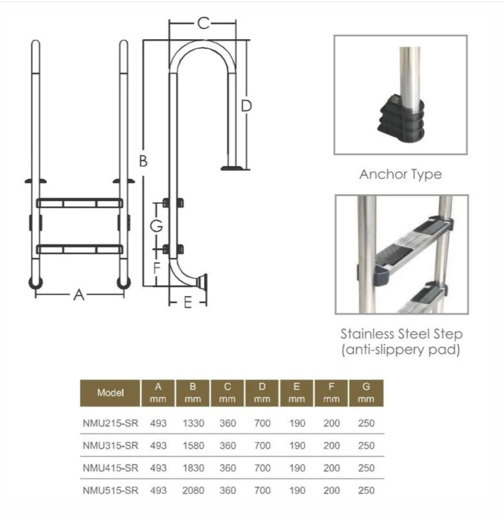 Бренд: Emaux,Кількість сходів: 5,Тип: Сходи з нержавіючої сталі Категорія: Emaux Muro NMU315-SR сходи для басейну 3 сходинки