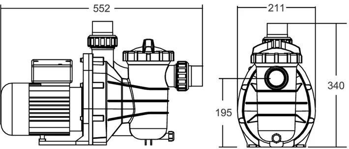 Циркуляційний насос із префільтром для системи фільтрації приватного або громадського басейну об'ємом до 55 м3. Кошик префільтра вловлює всі забруднення розміром 2,5 мм і більше, що дозволяє використовувати насос для брудної води.