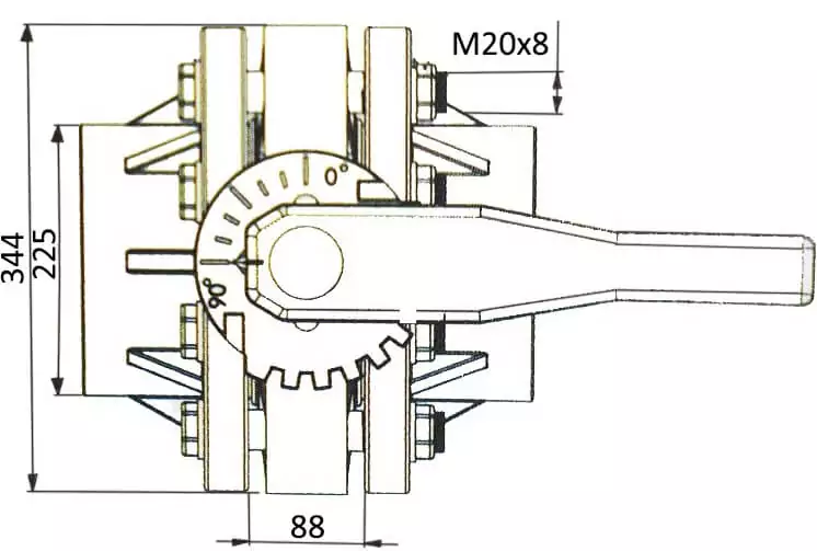 ERA кран ПВХ метелик д.225 з фланцями, він же поворотна засувка, виготовлений з сірого ПВХ, діаметром 225 мм. Такий кран дозволяє щільно перекривати потоки робочої середовища. Монтуються такі елементи за допомогою фланців.