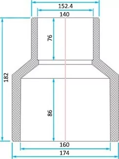 Габаритні розміри ERA редукція довга ПВХ Ø 140х160 мм: