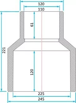 Габаритні розміри ERA редукція довга ПВХ Ø 225x110 мм: