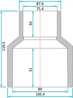 Габаритні розміри ERA редукція довга ПВХ Ø 90х75 мм:
