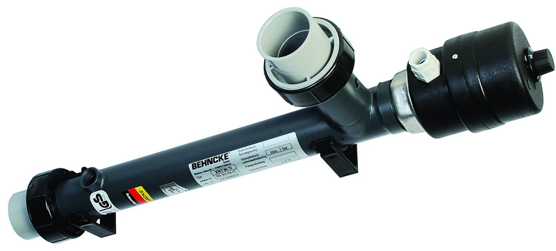 Проточний електронагрівач для басейну від одного з найкращих німецьких виробників Behncke. Проточна частина та корпус виготовлені з нержавіючої сталі марки AISI 316. Матеріал AISI 316 стійкий до високої вологості та хімічних реагентів дезінфекції басейнів. Нагрівальний елемент виготовлений зі сплаву Incoloy 825.