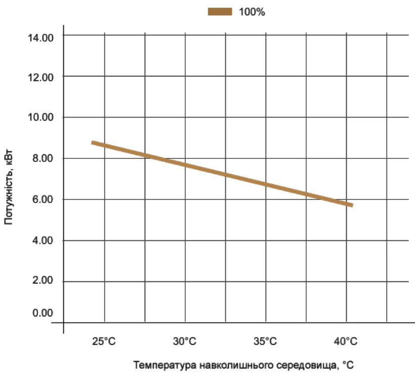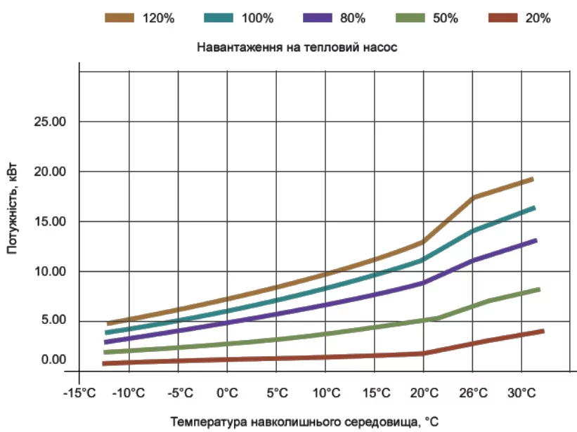 • Теплова потужність при вуличній температурі +26С – 17,0 кВт